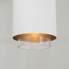 - The Matte Brass accents and cylindrical Matte White metal shade compliments the seeded glass detail for a sophisticated mix.