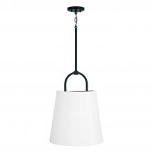 16"W x 21"H 1-Light Pendant in Matte Black with White Fabric Shade
