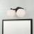 Circular forms meet all-around versatility in the Ansley 2-Light Vanity for HomePlace. The Soft White glass globe shades illuminate sophisticated style, while the Matte Black finish creates a sleek contrast.