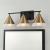 Create striking elegance in any powder room with the Avant 3-Light Vanity. The pointed Aged Brass metal shades widen to slightly translucent Frosted Glass to create an all-around stunning glow. Finished with Matte Black details, this luminaire evokes a distinct style.