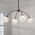 Bring modern curves and high contrast to any space with the Amos Medium Chandelier. The Soft White glass globes almost seem to float at the bottom of the curved arms, while the Black Iron finish creates subtle texture for added visual appeal.