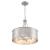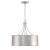 This 4-light pendant is the perfect way to bring timeless allure to any space. The drum-shaped solid metal shade, finished in Antique Silver, creates an eye-catching and appealing glow. 17.5" height and 18" width. Uses candelabra size bulbs, max 60 watts per bulb. LED bulb compatible. Comes with 120" of chain.