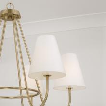 6-Light Chandelier in Matte Brass with Tapered White Fabric Shades and Glass Diffusers (9RNWE)