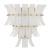 The Abigail Collection features tiered, curved panels of thick, hand-applied art glass arranged in a sculptural silhouette. Each textured glass piece is mounted to a structured metal frame and carefully shaped to diffuse light while adding depth and dimension. Whether illuminated or not, it serves as an artistic focal point—its layered form and artisanal materials creating visual impact from every angle. With handcrafted detailing and a bold, statement-making profile, the collection suits both contemporary and transitional interiors.