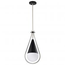 A modern collection with a twist, the Admiral 60-7913 medium pendant features a dual finish, unique design, and a fashionable statement for home luminaires. A suspended tear-dropped shape is comprised of matte black with brushed nickel elements encompassin