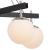Mid-Century and Post Modern Design Influences. Gorgeous White Recycled Glass Globes. Easy Re-lamping. Two Tone Satin Black with Brass or Polished Nickel with Black Finshes.