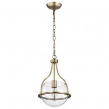 Elegant, transitional allure completes the Amado 60-7815 small pendant with it's unassuming style. The glow of vintage brass creates a warm ambiance and the clear glass bowl delicately showcases the light and is encompassed in graceful lines to exude c