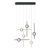 Various sized anodized rods suspend vertically in black or gold finishes. Each rod is furnished with a clear seeded glass orb that perfectly sits within an anodized ring.