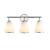 The Zoey Bathroom vanity collection radiates contemporary elegance with its polished nickel frame that gleams with timeless allure. The glossy white glassware softly diffuses light, creating a warm and inviting ambiance ideal for bathrooms. Perfectly blending elegance and functionality, this collection brings a refined touch to any vanity space. (Single, 2 and 4 light models also available)