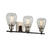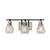 The "Nelson Collection" of bathroom vanities features clear glassware with a bottom rib. The cups and canopy are plated in brushed nickel with a hint of gloss and the arms are finished in black. (Looks great as shown with a retro vintage Edison bulb). 3 light model shown but also available in a single or 4 light model.