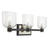 The "Lydon Collection" of bathroom vanities is slick and clean - a perfect compliment to any environment that is modern to transitional. The clear glassware has circular edges. The arms are finished in black while the accents are plated in nickel. Shown as 3 light model but also available in a single or 4 light version.