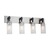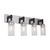 The Arlington collection features clear rectangular glassware that adds a touch of refinement to any bathroom and/or vanity. Its dual-tone black and satin nickel frame provides a modern aesthetic. This collection seamlessly blends style and functionality, making it a stylish choice for those seeking a contemporary and refined bathroom decor. 4 light wall sconce shown. (Also available in a single and 3 light versions.)