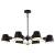 The Baxter 60-7386 six-light chandelier does not disappoint with its modern design and impressionable style. The black shades are finely cut at an angle and feature a white interior to maximize the light output. The lustrous burnished brass stems attach fr