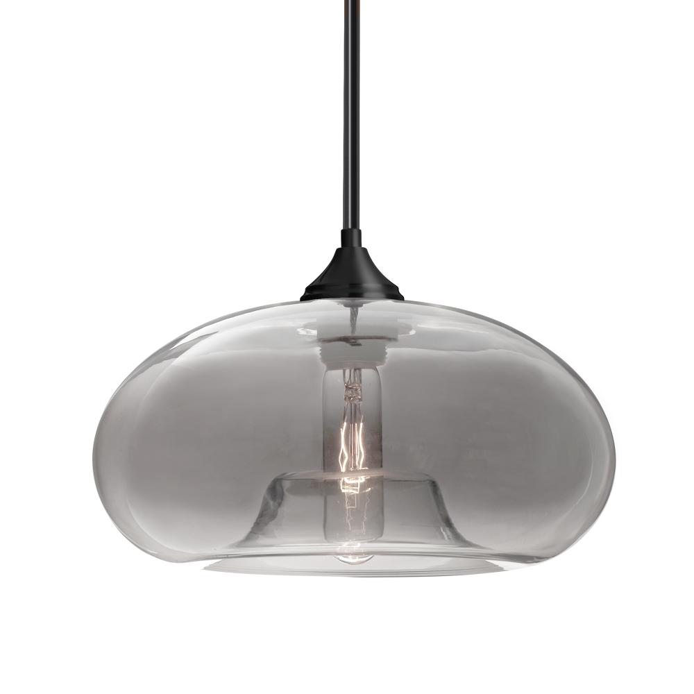 Our Bana is a modern and unique compact torus shape, with an interesting inverted open bottom, its retro styling will gracefully blend into today's environments. Our Smoke Trans glass is a colored semi-transparent glass. The seductive glow has a low key harmonious display that exudes a warm mood. When lit the glass is vitalizing as well as stylish. This handcrafted glass uses a process where every glass is consistently produced using a press mold, keeping variations to a minimum. The stem pendant fixture is equipped with an adjustable telescoping section, 4 connectable stem sections (3", 6", 12", and 18") and low Profile flat monopoint canopy. These stylish and functional luminaries are offered in a beautiful Black finish.