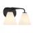 Get a warm and welcoming glow at the vanity with the Savoy House Blair 2-light bath light. Conical shades of white strie glass feature eye-catching wisps and swirls that add a touch of dimension and intrigue. The glass contrasts nicely with the versatile Matte Black finish. Blair is 8" in height, 15.5" in width and extends 8.5" from the wall. Uses two standard size bulbs of up to 60 watts per bulb. Bulbs not included. This bath light is damp area rated and may be installed with the glass facing up or down.