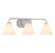 Get a warm and welcoming glow at the vanity with the Savoy House Blair 3-light bath light. Conical shades of white strie glass feature eye-catching wisps and swirls that add a touch of dimension and intrigue. The glass contrasts nicely with the versatile Satin Nickel finish. Blair is 8" in height, 25.5" in width and extends 8.5" from the wall. Uses three standard size bulbs of up to 60 watts per bulb. Bulbs not included. This bath light is damp area rated and may be installed with the glass facing up or down.