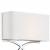 The minimalist two-light wall sconce features an oval metal accent below the white silk rectangular shade. Its simple form can be used for a contemporary or transitional home while versatile enough to be incorporated into any design.