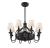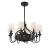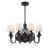 A classic chandelier design meets air circulation functionality in this Savoy House Brisa Fan D'Lier. Improve the comfort while you beautify your home with the elegance of this traditional style fixture. The graceful curved frame, upswept light arms, finial and detailed candle cups all have a rich, dark English bronze finish and each light has a tasteful off-white fabric drum shade. The fan housing features a decorative open grill structure for maximum air flow. Plus, eight 4W LED dimmable bulbs are included, so you can choose the perfect amount of illumination at any time. (A handheld remote with independent light control is included, too.) 34.75" wide and 24.13" high with an 18" downrod, so it’s ideal for your dining room, living room, family room, bedroom, enclosed porch or office.