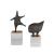 Abstract animals frolic atop bases of antique brass steel mounted on clear crystal cubes. Skillfully carved of black riverstone, this modernist duo adds a touch of whimsy to any space. Finish will vary.