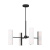 Sleek and modern, this contemporary collection features cylindrical linen shades and a visible flat spine for a clean look. It features a candelabra-style fixture with four sleek arms referencing mid-century modern design. On the end of each arm, frosted glass shades direct soft light in both directions.
