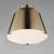 right arrow Long Description: Metal shades finished in a warm Heritage Brass are accented with Dark Bronze metal straps and Tobacco Brown leather wrapped details. Recessed within the metal shades, a frosted glass diffuser softly casts the LED light source within. Paddles on every shade