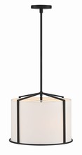 - Features a metal ring and fabric drum shade.
