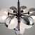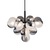 The Bolla Collection radiates unique allure through its innovative design, seamlessly combining half-acid white and half-ribbed smoke glass spheres. The chandelier's interplay of textures and tones establishes a visually striking focal point, effortlessly merging contemporary aesthetics with enduring charm. This unique glassware is complimented with a semi gloss black frame. Single light wall sconce shown. 13 light 3 tier chandelier shown. (height adjustable with rods and built in hangstraight for sloped ceilings)