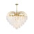 The Alessia collection boasts a captivating design featuring delicate glass leaves suspended from a brilliant airy brass frame. The unique glassware diffuses light casting a mesmerizing and enchanting ambiance in any space. With its harmonious blend of timeless brass elegance and nature-inspired elements, this collection seamlessly combines sophistication and organic beauty, making it a striking centerpiece for any room. The model shown is a 24 light 32" diameter chandelier (Multiple sizes available) (height adjustable via chain)