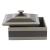 Tonal stripes add a tailored finish to a two-toned dove and graphite leather box. This pyramid-inspired accessory is topped with a bronze-plated handle that reflects its geometric lines. Lined in soft suede. Finish will vary.