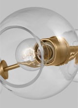 The Codyn five light single tier chandelier in Satin Brass is a contemporary take on a classic mid-century design. Clear glass shades with open-ended spheres accent the elongated keyhole strap detail, for a clean look. This minimalist collection relies on subtle details to create visual interest