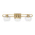 The Codyn three light vanity fixture in Satin Brass is a contemporary take on a classic mid-century design. Clear glass shades with open-ended spheres accent the elongated keyhole strap detail, for a clean look. This minimalist collection relies on subtle details to create visual interest