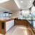 Designed with neutral, clean lines, the Colony 60-7488 large hanging pendant is ideal for an eat-in kitchen, dining room, and even a bedroom. The loft-style shallow pan metal shade is done in matte black, with a white interior to reflect the downfacing lam