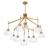 The Savoy House Corbin 9-light chandelier brings a crisp, contemporary lighting look to any space. Molded, curved clear glass shades encase the light sources and the Warm Brass finish is beautifully versatile. Corbin is 41" in width and has an adjustable height ranging from 32" to 86". Comes with four 12" downrods and one 6" downrod. Uses nine candelabra size bulbs of up to 60 watts per bulb. Bulbs not included.