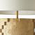 The stair-stepped texture of our faux travertine resin column embraces the forms of classical Greek architecture. Each chevron detail delivers a herringbone effect when illuminated underneath the ivory microfiber drum shade. Antique brass hardware. Finish will vary.