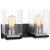 A combination of glass and metal comes together to create the stunning design of the Crossroad vanity light. The square, clear glass shades showcase the bulbs. The sockets and base are finished in brushed nickel to contrast beautifully with the matte black