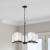 A combination of glass and metal comes together to create the stunning design of the Crossroad chandelier. The square, clear glass shades showcase the bulbs. The sockets and base are finished in brushed nickel to contrast beautifully with the matte black f
