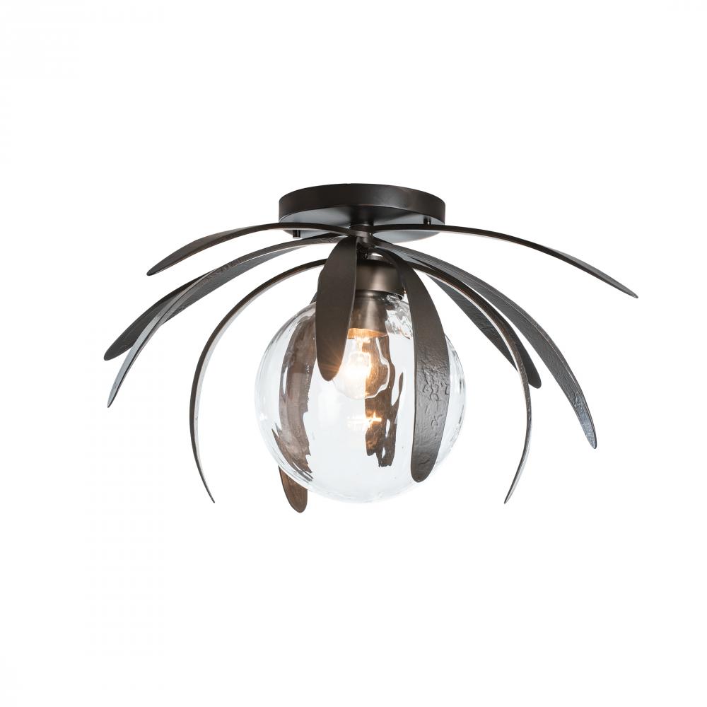 True to the beauty of its namesake flower, the Dahlia Flush Mount fixture provides a sculptural botanic aesthetic. Handcrafted forged steel “petals” flare outward and downward to embrace a glass globe containing a singular light source at its center. Available in 9 standard finishes. In addition to the flush mount, the Dahlia Collection includes chandeliers and mini pendant options to grace any space. Can also be wall mounted as a sconce.