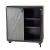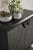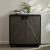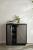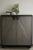 The classic techniques of gray straw marquetry inspired the Ellington. Marquetry made of boiled straw reflects the light, applied in an armor-like faceted patterns. Accented with triangular iron bronze pulls, two doors open to on adjustable hinges to unveil shelving. Framed in ebony oak veneer. Finish will vary.