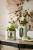 We finished our contemporary vases with elemental cutouts. Designed of ivory ricestone composite with clear glass centers to display the stems and blooms of your favorite bouquet. Finish will vary.