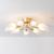 The botanical silhouette of Enfield features a sleek branching profile in scaled-up proportions. Cloud glass shades inspired by floral blooms offer a soft, contemporary feel with bias-cut ends that direct light upwards. The elongated, slender ‘stems’ embody a modern aesthetic, enhanced by the luxurious Vintage Gold Leaf finish.