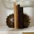 The rounded silhouette of the puffer fish gives our Fenwick bookends their textural form. Cast of aluminum and plated in dark antique brass, this marine-life-influenced set recalls a found object or ancient relic. Stage them on a bookshelf or style them as sculptures. Finish will vary.