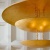 The out-of-this-world design of the Florko is supersized in a new over scaled version. Gold-leafed iron curled discs float effortlessly under the space-like dome. Both lower levels hold lights, creating a soft glow. Finish will vary.