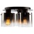 The "Henley Collection" 3 light flush mount features satin black aluminum metal work complimented with smoke glassware. (also available in satin black metal work and mirrored glassware)