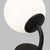 The Galassia one light wall sconce by AERIN in midnight black perfectly balances a glass globe and curving teardrop frame, giving it a contemporary look. The white glass casts a soft, welcoming glow over a space. This piece works particularly well in a hallway.