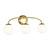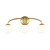 The Galassia three light wall sconce by AERIN in burnished brass perfectly balances a glass globe and curving teardrop frame, giving it a contemporary look. The white glass casts a soft, welcoming glow over a space. This piece works particularly well in a hallway.
