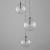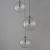An airy configuration of Clear blown glass globe shades in various sizes suspend on thin low voltage wires. Thin tubes finished in Black or Gold descend into the center of the globes where a small G4 LED lamp provides a spark of light.