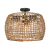 Bring nature-inspired elegance into your home with the Golden Lighting Piper 3-light Outdoor Ceiling in Natural Black. Featuring a wicker shade and a natural black frame, it creates a welcoming atmosphere. The Maple All-Weather Wicker shade showcases an airy design with natural variations that add rustic charm. Handcrafted from durable synthetic wicker, this open-weave shade allows light to play beautifully while enhancing the tranquil vibe of your outdoor area. The natural black finish presents a softer, more grounded look, making it an excellent match for styles ranging from modern to transitional. Designed for outdoor spaces, this fixture is wet location rated and can easily withstand the elements, making it perfect for gazebos and porches. The flexible installation makes it suitable for various ceiling heights, while the overall size of 19.13"W x 15"H x 19.13"D allows it to provide ample illumination. It requires three E26 medium base bulbs (not included) with a maximum wattage of 100 per bulb. Conclude your outdoor decor with this stylish, quality fixture that enchants both your space and your spirit, providing cozy, inviting light for gatherings.