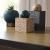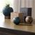 Monolithic resin pedestals of ash brown and graphite tones are the ideal base for this set of mixed-material forms. Textured with daubs and grooves, each sculpture is topped with a polished marble sphere in a contrasting forest or chamois shade. Can double as a stylish storage compartment for small items. Finish will vary.