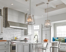 Combining the traditional profile of a tapered shade with on-trend Clear Seeded glass, the sleek frame and the square-linked chain give the Harrow pendant light collection an elevated, contemporary, transitional look. The wall sconce is delivered with two glass options, Clear Seeded and Opal Etched, for the customer's choice to customize. Burnished Brass, Oil Rubbed Bronze, and Polished Nickel finishes are available to create completely different looks.