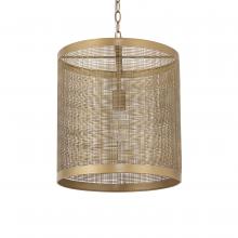 A crosshatching etched pattern on metal shades finished in Gold or Matte Black powder coated finishes. Available in multiple sizes of pendants and matching ADA compliant wall sconce.
